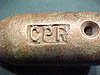 | Above left to right.Two hooks (probably) from the CPR (Canadian Pacific Railway) and the PRR (Pennsylvania Railroad); close-ups of markings; [Update: email received 10/09: