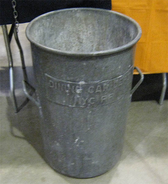 right. A broadside from the Marietta & Cincinnati; a broadside from the Ohio & Mississippi; a dining car pail from the New York Central; an ALCO builder's photo.