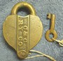 Railroad LocksLocks were (and are) an integral part of railroad operations. A particular company's territory might stretch over hundreds of lonely miles, so the security of its facilities were of utmost importance. Consider how much damage a single misaligned switch might cause, and it's no wonder that railroad companies paid considerable attention to security from the very beginnings of the industry. Railroad locks had to be strong enough to endure harsh, industrial conditions as well as repeated use. They also had to be standardized so that different empoyees could open them, provided they had the proper key. Locks evolved through a progression of styles, from very ornate customized variations to more utilitarian, standardized models. Among the most prized styles are the early "cast back" locks [also referred to by lock collectors as "fancy back" locks] which had ornate, three-dimensional designs cast into the lock body, The designs were usually based on the railroad's initials. Making such locks involved special fabrication and brass casting skills, since each design varied with the railroad. Good examples of such locks with original patina can go for many hundreds of dollars. In time, locks evolved to plainer brass models with simple cast initials, and then to standardized, steel models with stamped railroad initials. The steel models were of course subject to corrosion, whereas the brass models just acquired a patina. Value on the collectors market varies accordingly with steel models generally being quite inexpensive to acquire. The shape of railroad locks varied also. "Heart shaped" locks were most common and were typically used to lock switches. A variety of other shapes were also manufactured for such purposes as locking signal facilities and buildings. Generally speaking, collectors consider a lock to be a railroad lock only if it is marked for a railroad. As with lanterns, "railroad style" locks could reasonably have been used in industrial operations of a non-railroad nature. A separate page shows a more modern steel railroad lock disassembled. Railroad locks of a variety of styles are shown below. A hearty thanks to all who contributed photos and comments.