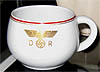 Above Left to Right. A small pitcher in the "Harriman Blue" pattern of the Union Pacific; a small pitcher in the "Monogram" pattern of the Pittsburgh & Lake Erie; a cup in the "McKinley" pattern of the Alaska Railroad; a German railway cup from the WWII era.