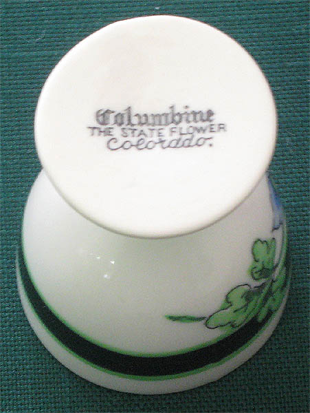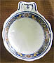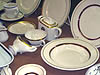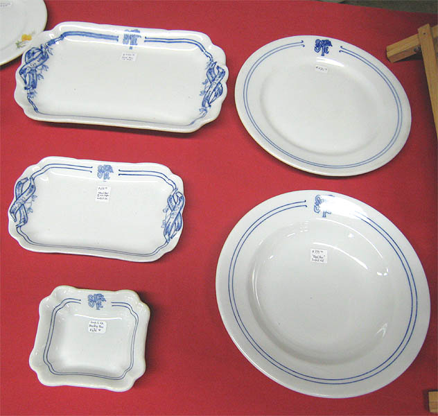 Above Left to Right. Various pieces in the "Mimbreno" pattern of the "Santa Fe" Railway; a divided plate in the "Indian Tree" pattern of the Pullman Company; an egg cup in the "Columbine" pattern of the Union Pacific; back view of same.