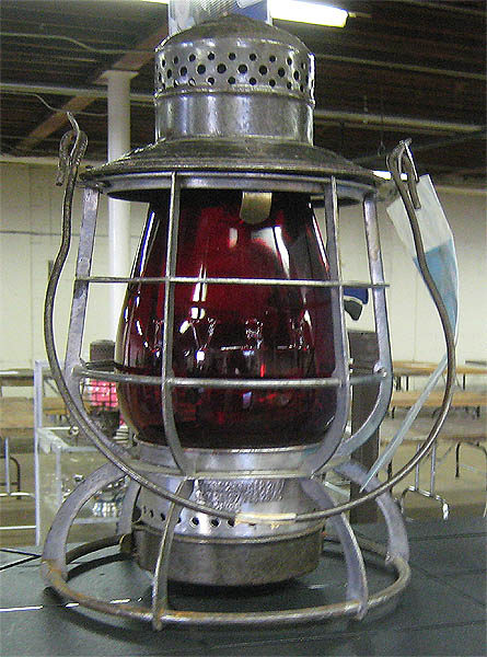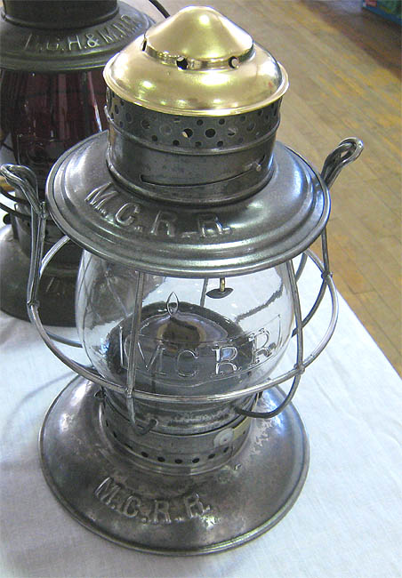 brasstop bellbottom lantern marked for the Detroit, Toledo & Milwaukee with a red cast globe; a