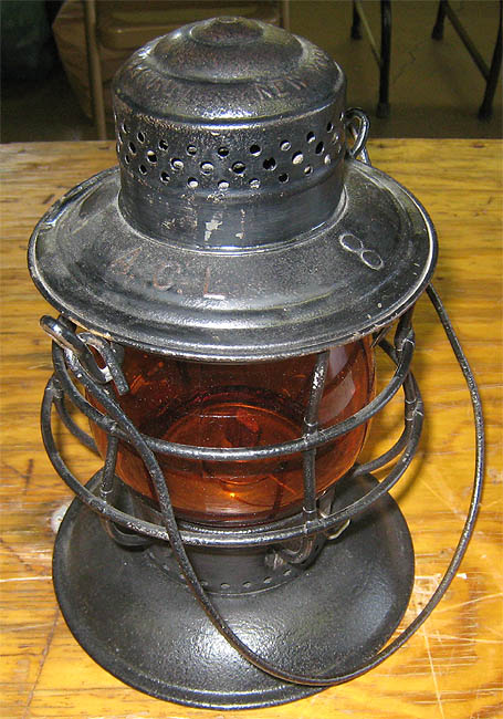 Above Left to Right. A Star Headlight bellbottom lantern marked for the Interborough Rapid Transit Company with a amber globe; Armspear lantern marked for the Lehigh Valley Railroad with a red cast globe; Adams & Westlake lantern marked for the Western Maryland with a green-cast globe; Adams & Westlake #200 or #250 marked for the Western Maryland with a blue etched globe; Armspear bellbottom lantern marked for the Atlantic Coastline with an amber globe.